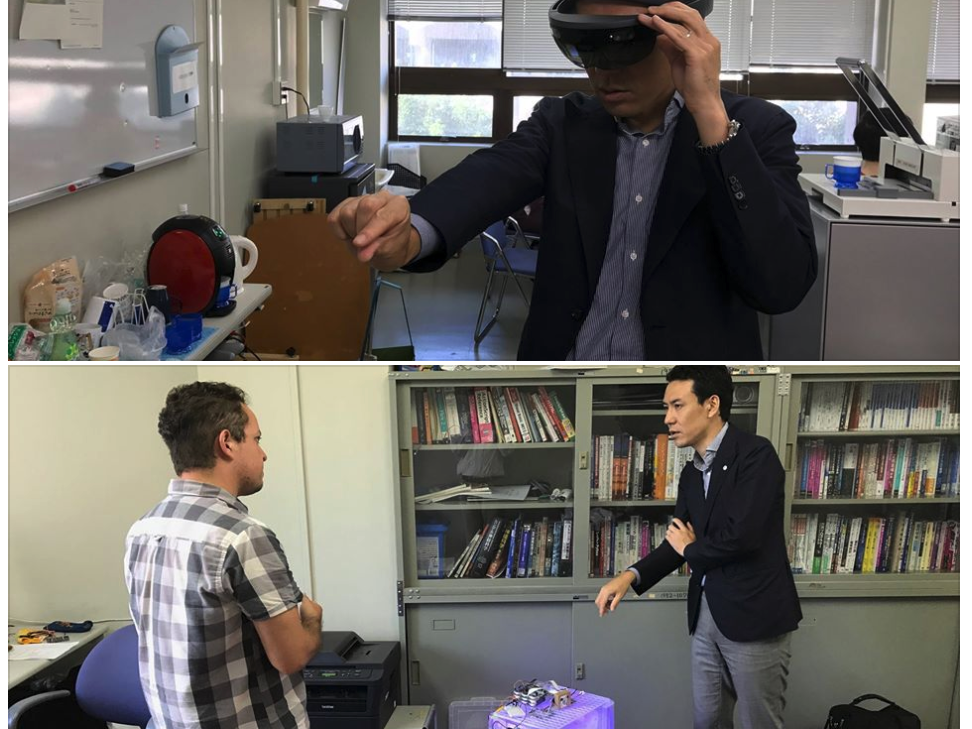 ネスレジャパンの島川様に「ホロレンズからのバリスタアイ」を試してもらったり,室内自動栽培システムを始めとして,中沢研究室の多くの成果を体験してもらいました.ソフトバンク様より一歩先に実現した「ペッパーからのバリスタアイ」についてもしっかりと認識いただいており大変嬉しいことでした.